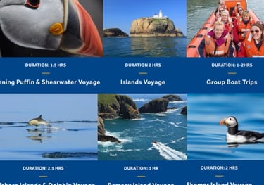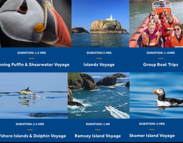 Voyages of Discovery offer a range of island and wildlife boat trips including all those pictured to the left https://www.ramseyisland.co.uk/